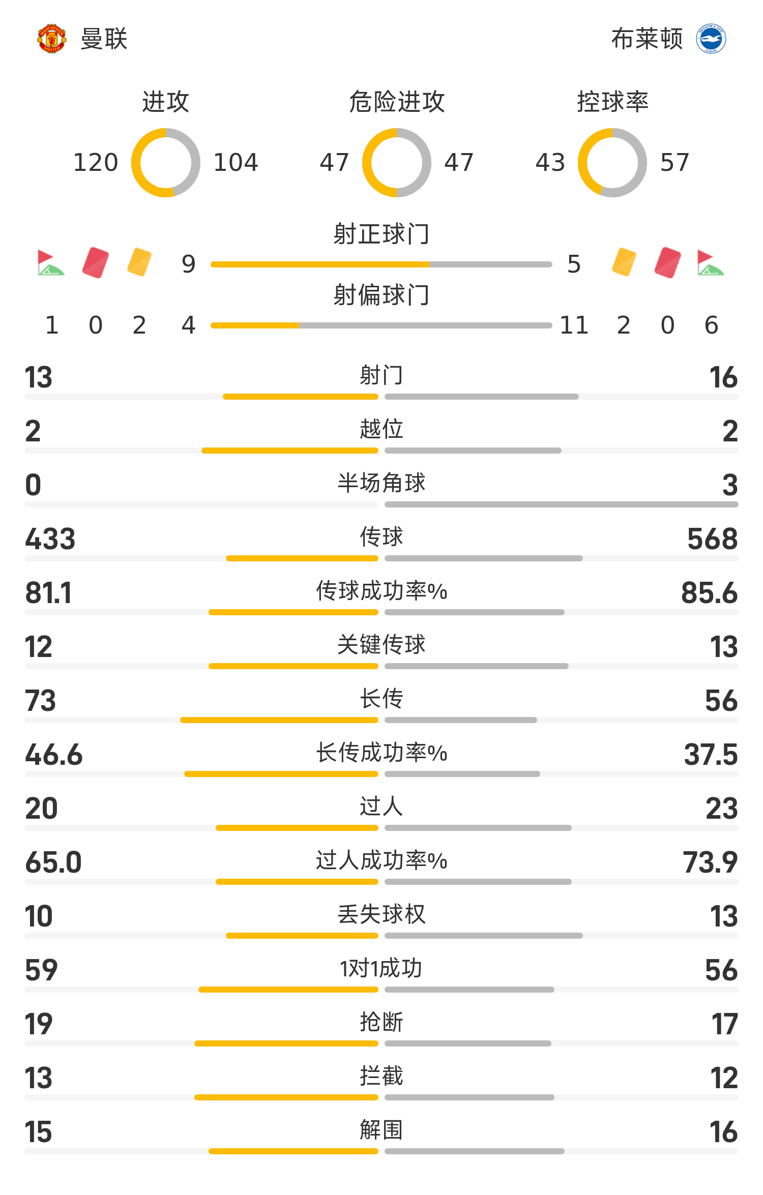 दूसरे हाफ के 61वें मिनट में शेश्को ने एमबेमो की मदद की और शांति से गोल किया. मैनचेस्टर यूनाइटेड ने स्कोर 3-0 कर दिया. 74वें मिनट में, वेल्बेक ने सीधे गोल करने के लिए फ्री किक अवसर का उपयोग किया और ब्राइटन को एक गोल वापस मिल गया। स्टॉपेज टाइम के दूसरे मिनट में, मिलनर ने साइड किक ली और कोस्टोरस को हेडर से गोल करने में मदद की। खेल की उलटी गिनती के दौरान, एमबीमो ने शांतिपूर्वक दूर कोने को धक्का दिया और जीत हासिल करने के लिए स्कोर किया। मैनचेस्टर यूनाइटेड ने आखिरकार ब्राइटन को घरेलू मैदान पर 4-2 से हराकर लीग में लगातार तीसरी जीत हासिल की।