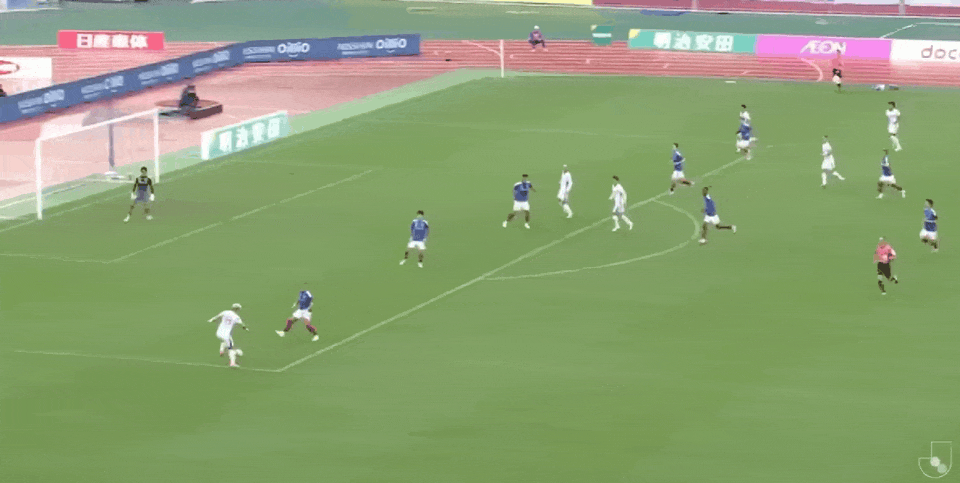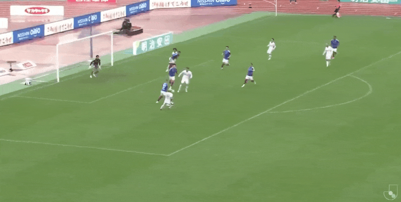 26' शिओटानी ने आर्क के ऊपर से गेंद को वॉली किया और गेंद को किक मारकर दूर फेंक दिया