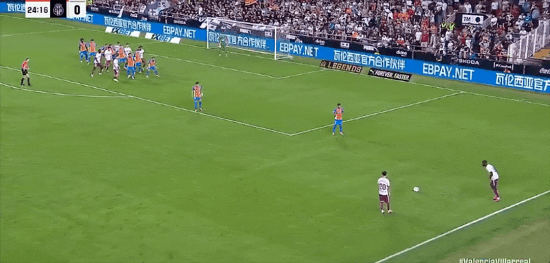 29' पेपेलु ने सीधे तीन-सेकंड क्षेत्र के सामने एक फ्री किक ली, और गेंद स्टैंड की ओर उड़ गई