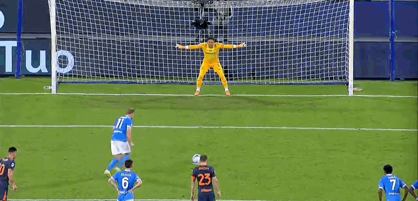 15' लुटारो ने बेहतरीन प्रदर्शन किया तीन-सेकंड क्षेत्र में अवसर, और उनके शॉट को नेपल्स के गोलकीपर ने बचा लिया