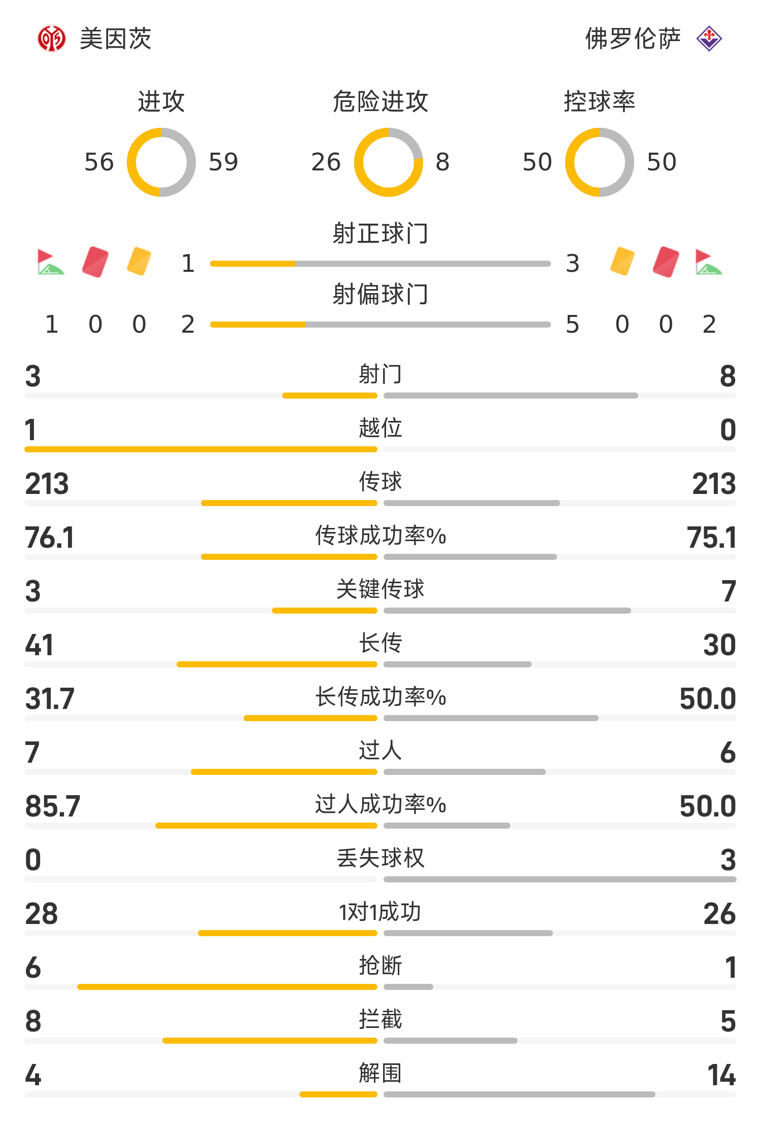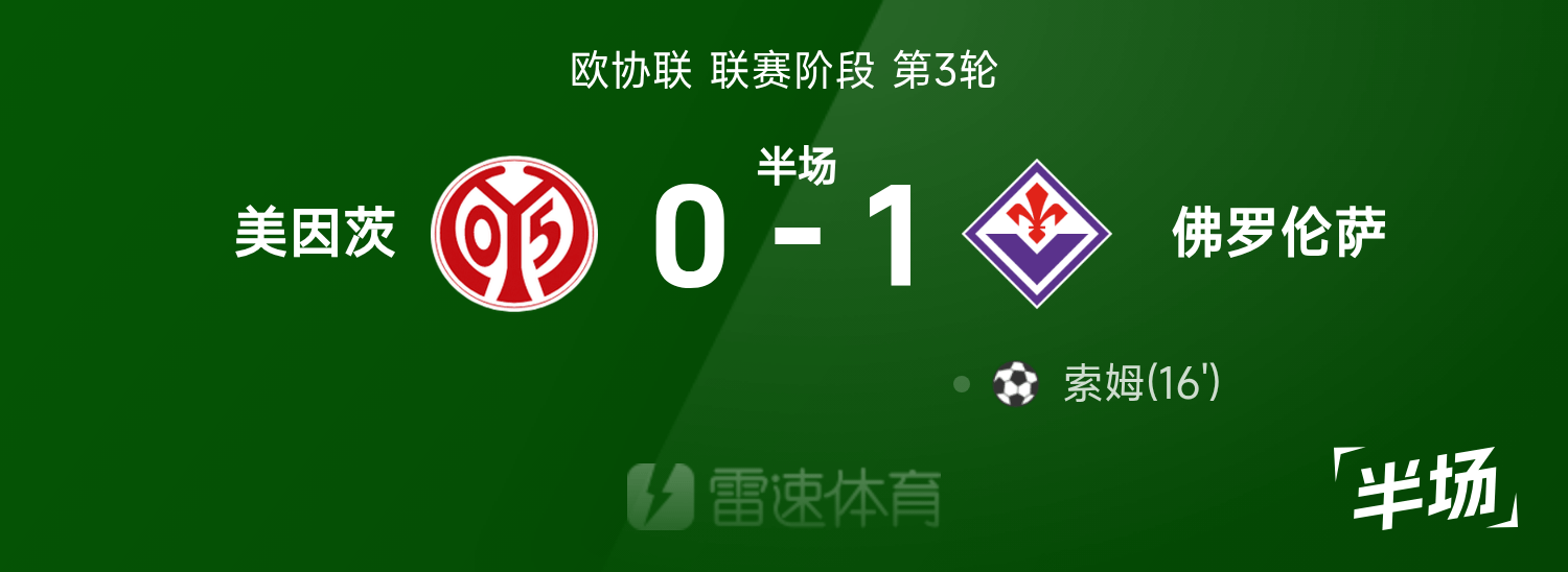 यूईएफए हाफटाइम: सोम स्कोर, मेन्ज़ 0-1 फियोरेंटीना