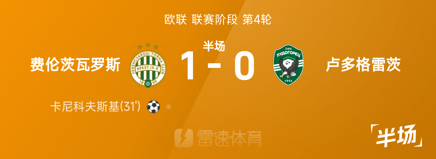 6686 खेल नवंबर 07 25/26 यूरोपा लीग के चौथे दौर में, फेरेंकवारोस का सामना लुडोगोरेट्स से हुआ। हाफटाइम के बाद, दोनों पक्षों के बीच स्कोर 1-0 लुडोगोरेट्स था, जिसमें कनिकोवस्की ने एक गोल किया।