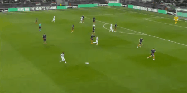 43' गोल - मार्केलेकिस ने डेल को गोल करने में सहायता की
