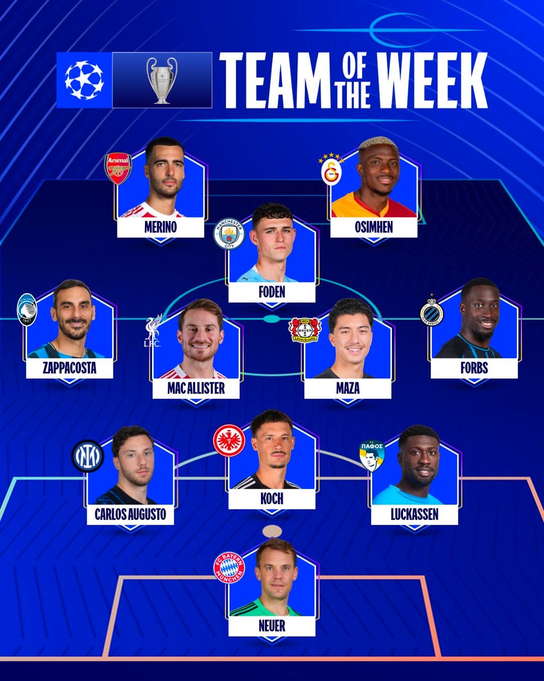 6686 स्पोर्ट्स न्यूज ने 7 नवंबर को यूईएफए ने आधिकारिक तौर पर लीग चरण के चौथे दौर के लिए सप्ताह की टीम की घोषणा की। फोडेन, मैकएलिस्टर और मेरिनो सहित ओसिम्हेन और नेउर इस सूची में सबसे आगे हैं।