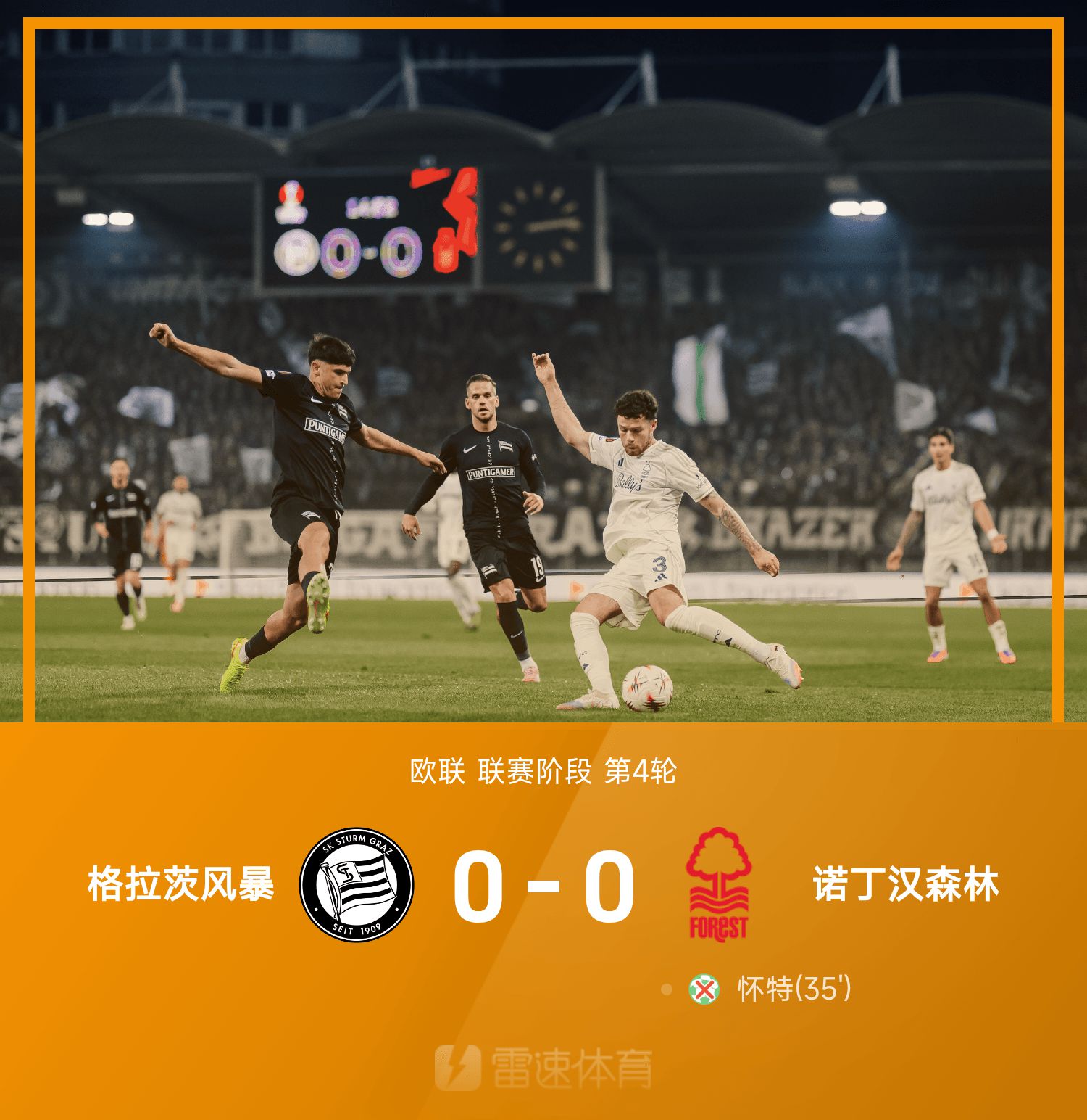 6686 खेल समाचार 7 नवंबर को 25/26 यूईएफए यूरोपा लीग के चौथे दौर में, ग्राज़ स्टॉर्म ने नॉटिंघम फ़ॉरेस्ट के साथ 0-0 से ड्रॉ खेला। पूरे मैच के दौरान, येट्स की शीर्ष गेंद को गोल लाइन ने साफ़ कर दिया, मेलोन के गोल को अस्वीकार कर दिया गया, विलियम्स ने गेंद को पेनल्टी क्षेत्र में पास किया और हैंडबॉल का कारण बना, गिब्स व्हाइट की 12-यार्ड पेनल्टी बचाई गई, डोमिंगुएज़ ने अंतिम क्षण में सेंटर पोस्ट पर वॉली लगाई और अंतिम शॉट चूक गए।