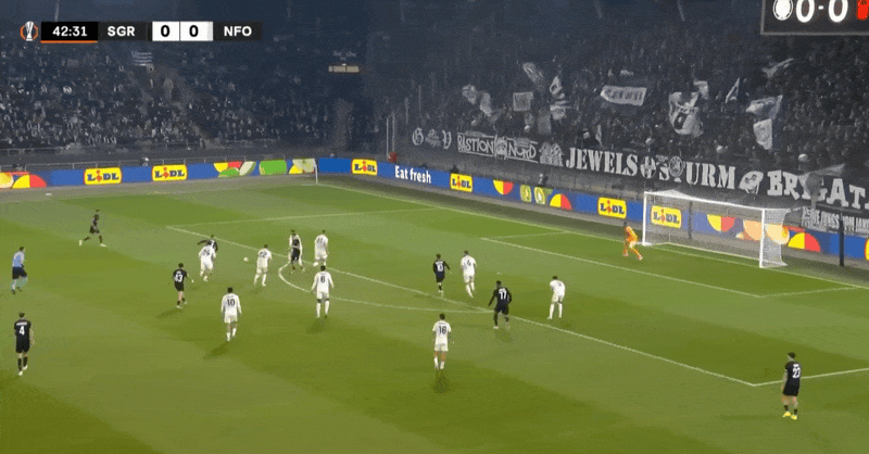 ग्राज़ स्टॉर्म शुरुआती लाइनअप: 1-क्रिस्टेंसेन, 17-कैरिक, 47-ईयू, 35-गेलहॉफ (57'24-लावल), 23-मलिक (88'2-मिशेल), 4-स्टैनकोविक, 10-कितेशविली (5) 8'11-कयाम्बो), 19-होर्वाट (78'25-हिललैंडर), 43-हॉडल, 77-मैलोन (57'20-जट्टा), 8-रोज़गा