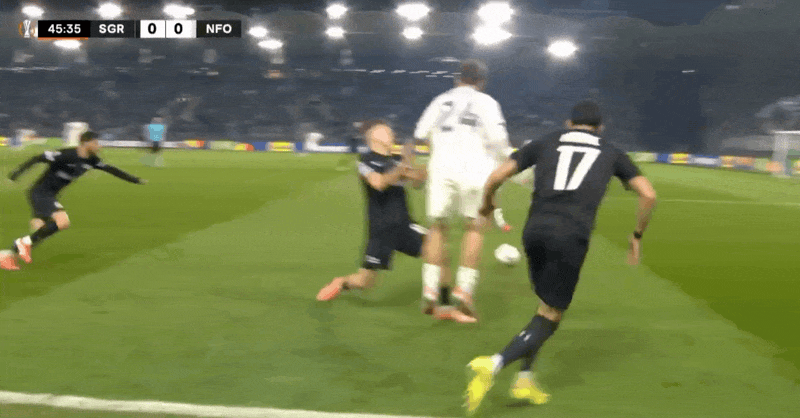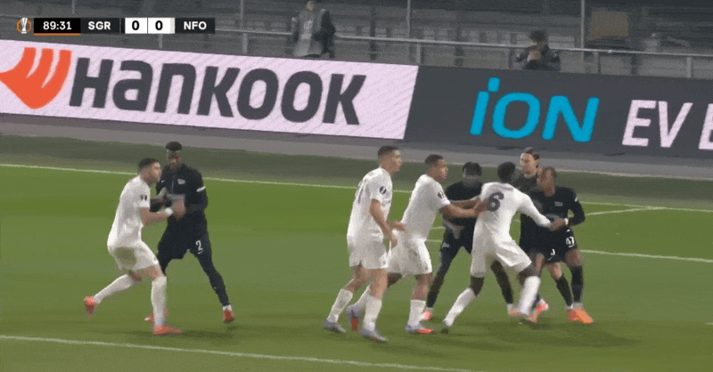 6' गेंद पास होने के बाद कितेशविली जमीन पर गिर गये. रेफरी ने फैसला सुनाया कि कोई उल्लंघन नहीं हुआ। पूर्व ने चुपचाप प्रशंसा की