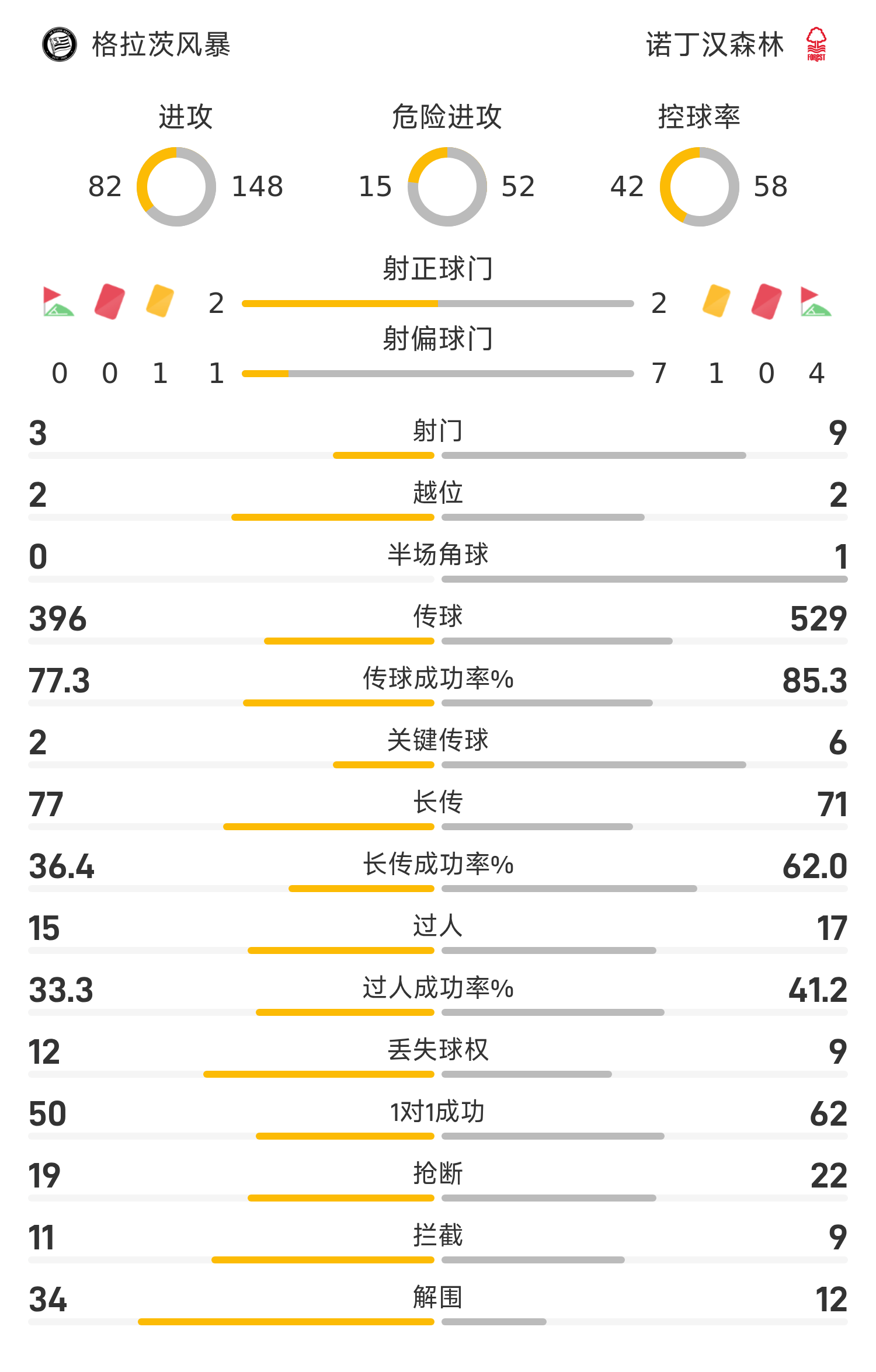 नॉटिंघम फ़ॉरेस्ट की शुरुआती लाइनअप: 13-विक्टर, 31-मिलेंकोविक, 3-विलियम्स, 4-मोराटो, 37-सवोना, 6-संगारे, 22-येट्स, 10-व्हाइट (78'5-मुरीलो), 16-डोमिंग्वेज़, 24-मैक्कार्टी (66'14-एनडॉय), 15-काली मुएन्डो (80'44-एबट)