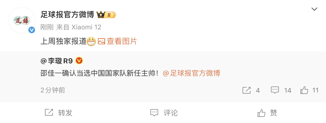 5 नवंबर को 6686 खेल समाचार "फुटबॉल समाचार" रिपोर्ट के अनुसार, पूर्व चीनी पुरुष फुटबॉल राष्ट्रीय फुटबॉल टीम, सहायक कोच और वर्तमान क़िंगदाओ वेस्ट कोस्ट कोच शाओ जियायी को चीनी पुरुष फुटबॉल टीम के मुख्य कोच के रूप में चुने जाने की पुष्टि की गई थी।