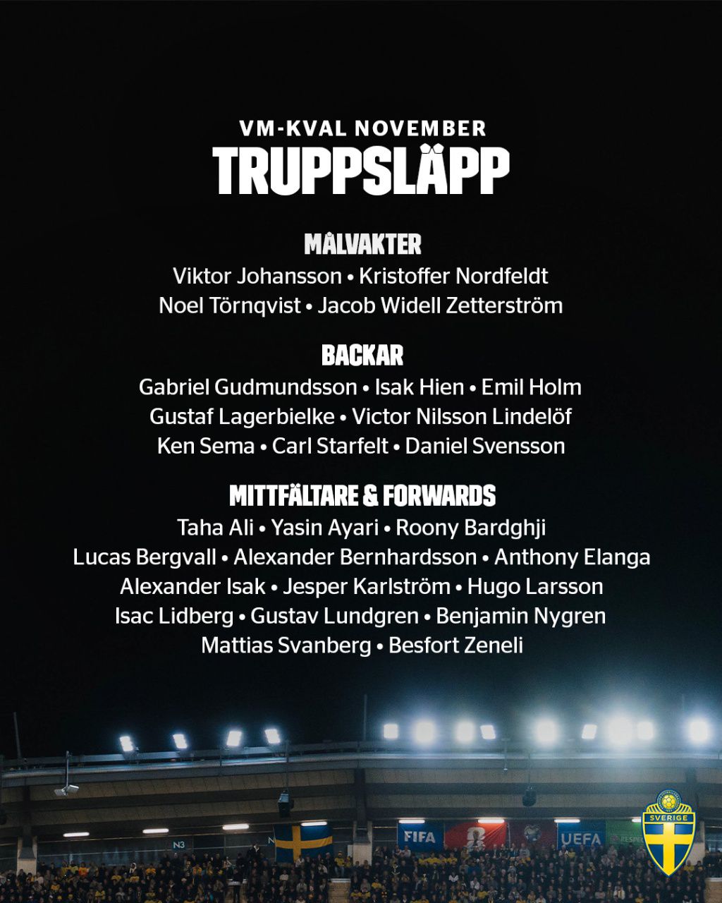 स्वीडिश राष्ट्रीय टीम रोस्टर: इसहाक आगे है, जेकेरिस घायल है