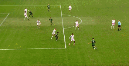 77' सेर्गिन्हो को तीन-सेकंड क्षेत्र के सामने गेंद मिली, दो रक्षकों के खिलाफ बाहर से शॉट, और गेंद पोस्ट से चूक गई