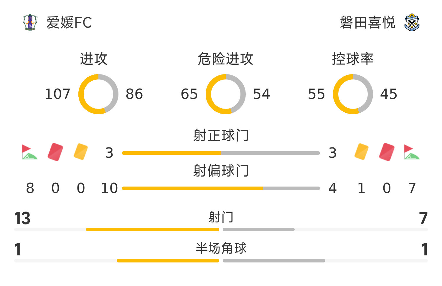 एहिमे एफसी शुरुआती लाइनअप: 36-त्सुजी शुगो, 37-इशियो रोमा, 19- ताकाया कुरोशी, 25-ओंकी योशिदा, 44-किमी मोरियामा, 7-सोनेडा त्सुमुगी (70'10-सातो रियो), 24-कोडा हिदेशोग (70'40-सुगिमोरी काओशी), 28-माएदा फुकुसुके, 8-फुकासावा युटा (81'15-त्सुरुनो रेकी), 13-होरियोमी युकी (87'48-युकिटोमो शोया), 32-फुजिमोटो योशिकी (81'17-मुराकामी युही)