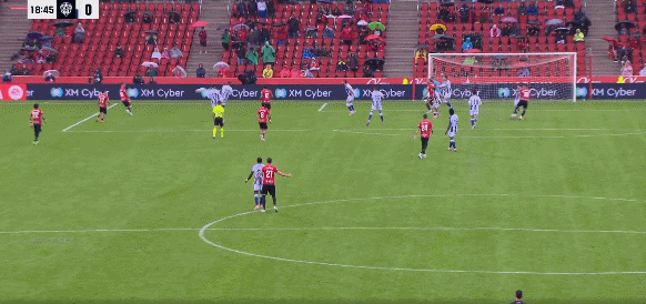 18' लेवांटे की फ्रंटकोर्ट जोड़ी ने तेजी से जवाबी हमला करने के लिए कदम बढ़ाया, लेकिन उन्होंने गेंद को पास कर दिया और मौका चूक गए