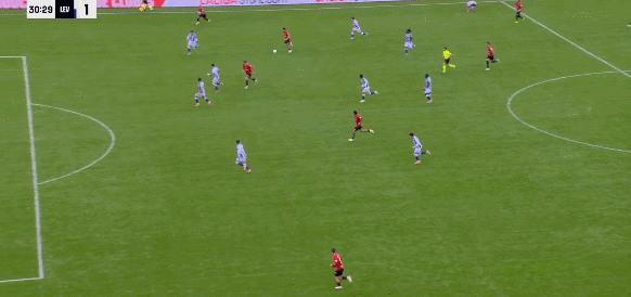 31' डेडेल ने उन्हें तीन सेकंड के क्षेत्र में पीछे से पछाड़ दिया, और फिर उनकी शक्तिशाली वॉली ने गेंद को ऊंचा मारा