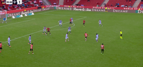 रियल मैलोर्का की शुरुआती लाइनअप: 1-रोमन, 24-वर्जेंट, 22-मोजिका, 23-माफियो, 21-रेलो, 10-डार्डेल, 8-मोरेन्स, 12-कोस्टा, 18-जोसेफ, 17-विजिली, 7-मुरीकी