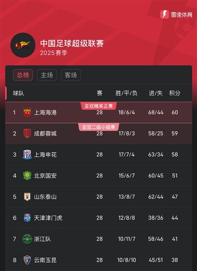 चीनी सुपर लीग चैम्पियनशिप की स्थिति: बंदरगाह चेंगहुआ शेनहुआ में केवल 2 अंक बचे हैं, गुओन पूरी तरह से पीछे है