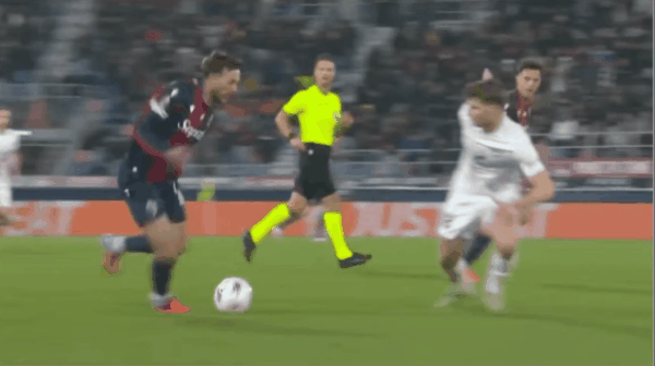 क्या 42' बारह गज है? बोलोग्ना के खिलाड़ी को तीन सेकंड के क्षेत्र में नीचे खींच लिया गया, लेकिन रेफरी ने डाइविंग के लिए सीटी बजाई