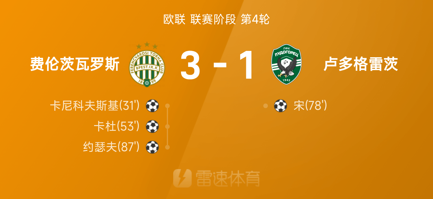 6686 स्पोर्ट्स नवंबर 07 25/26 यूरोपा लीग के चौथे दौर में, फेरेंकवारोस ने लुडोग्रेक को 3-1 से हराया। पूरे खेल के दौरान, काडू, जोसेफ और कनिकोवस्की ने गोल किए, लेकिन सॉन्ग ने गोल किया और सेवियर को बचाना मुश्किल हो गया।