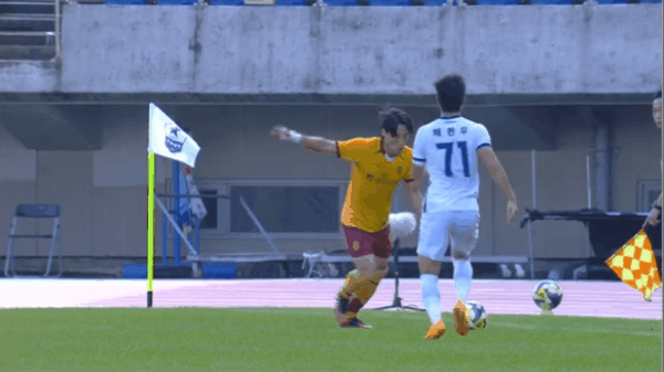 18' मोट्टा पास प्राप्त करने के लिए बाईं ओर तीन-सेकंड क्षेत्र में घुस गया और वॉली चला गया। गोलकीपर जिन गेंगमिन ने गेंद बचाई