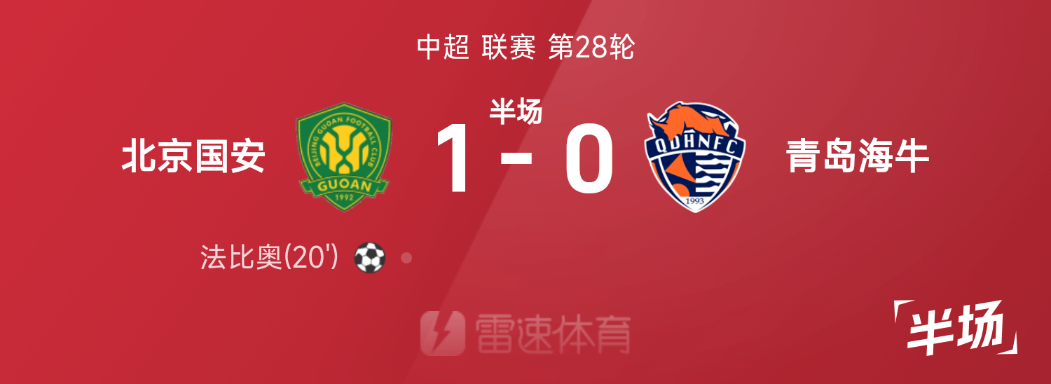 चीनी सुपर लीग हाफटाइम: दावान ने सहायता की, फैबियो ने स्कोर किया, बीजिंग गुओन 1-0 क़िंगदाओ हैनियू