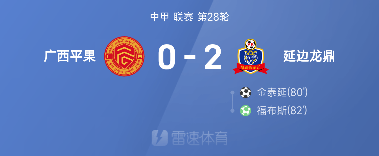 6686 खेल 26 अक्टूबर 25वीं चीनी लीग वन के 28वें दौर में, यानबियन लोंगडिंग ने गुआंग्शी पिंगगुओ को 2-0 से हराया। पूरे खेल के दौरान, फोर्ब्स और किम ताए-योन ने गोल किये।