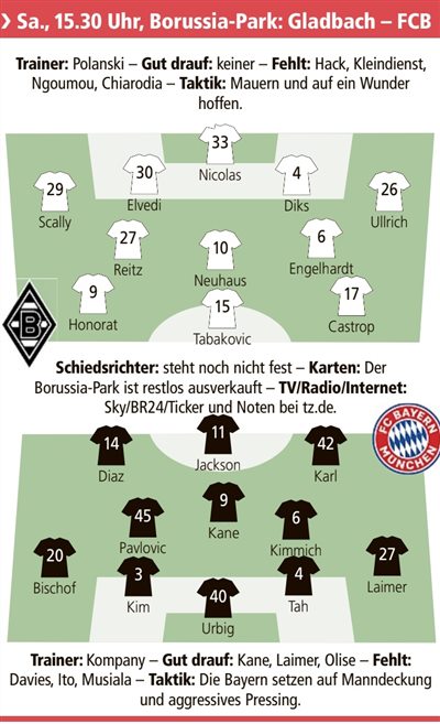 जर्मन मीडिया बायर्न बनाम बोरुसिया मोनचेंग्लादबाक के लिए शुरुआती लाइनअप की भविष्यवाणी करता है: बायर्न कई चक्कर लगाएगा, और जैक्सन दिखाई देगा