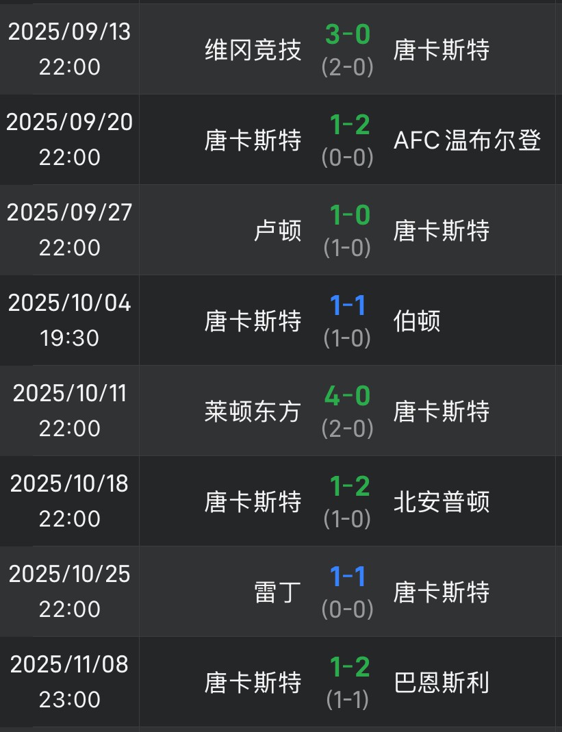 प्रतिस्पर्धी स्थिति सुस्त है! डोनकास्टर ने इंग्लिश लीग वन में पिछले 8 मैचों में एक भी जीत हासिल नहीं की है, केवल 2 ड्रॉ रहे हैं और 6 हारे हैं।