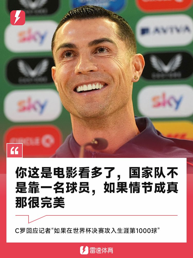 सी रोनाल्डो ने यह भी कहा, ''हो सकता है कि फुटबॉल पर मेरे विचारों के बारे में बात करने के लिए निकट भविष्य में मेरा फिर से साक्षात्कार लिया जाए। आपने मुझसे यह प्रश्न इसलिए पूछा क्योंकि आपने मुझसे वही प्रश्न पूछा था जो रोनाल्डिन्हो से उस समय पूछा गया था टीम यहां जीतने के लिए है। यह पूरे देश और हमारे सभी खिलाड़ियों के लिए महत्वपूर्ण है।" रोनाल्डो ने कहा: "मुझे लगता है कि वह रेफरी पर दबाव बनाना चाहते हैं। वह एक स्मार्ट कोच हैं। मैंने कई वर्षों तक फुटबॉल खेला है और मैं समझता हूं कि कोच क्या सोचते हैं और खिलाड़ियों पर दबाव कम करने के लिए वे कैसे कड़ी मेहनत करते हैं। मेरा मानना है कि हम एक अद्भुत खेल खेलेंगे और हम गेम जीतेंगे।" हम जानते हैं कि वे बहुत शारीरिक हैं लेकिन हम देखेंगे कि कल क्या होता है लेकिन मुझे उम्मीद है कि पुर्तगाल जीतेगा।" अगर वह विश्व कप फाइनल में अपने करियर में 1,000 गोल कर सकते हैं, तो रोनाल्डो ने सीधे कहा: "आपने बहुत सारी फिल्में देखी हैं। राष्ट्रीय टीम एक खिलाड़ी पर निर्भर नहीं है। बेशक, गोल करने से मुझे हमेशा खुशी होती है। मुझे अगले विश्व कप में भाग लेने की उम्मीद है। यदि आपके द्वारा उल्लिखित फिल्म का कथानक वास्तविकता बन सकता है, तो यह एकदम सही होगा।"