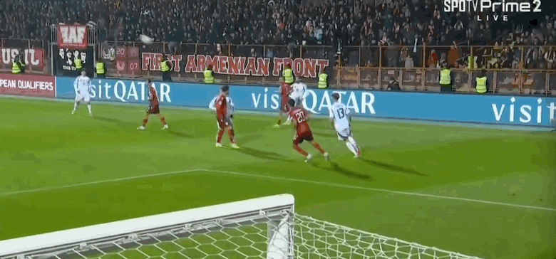 42' शेफ़र तीन-सेकंड क्षेत्र में गोल करने में विफल रहे, और अर्मेनियाई गोलकीपर ने गेंद को जब्त कर लिया
