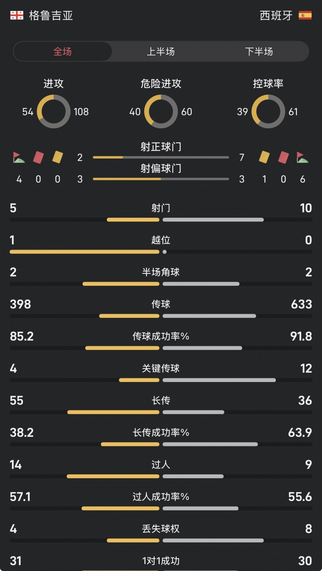 जॉर्जिया बनाम स्पेन पूरे खेल के आँकड़े