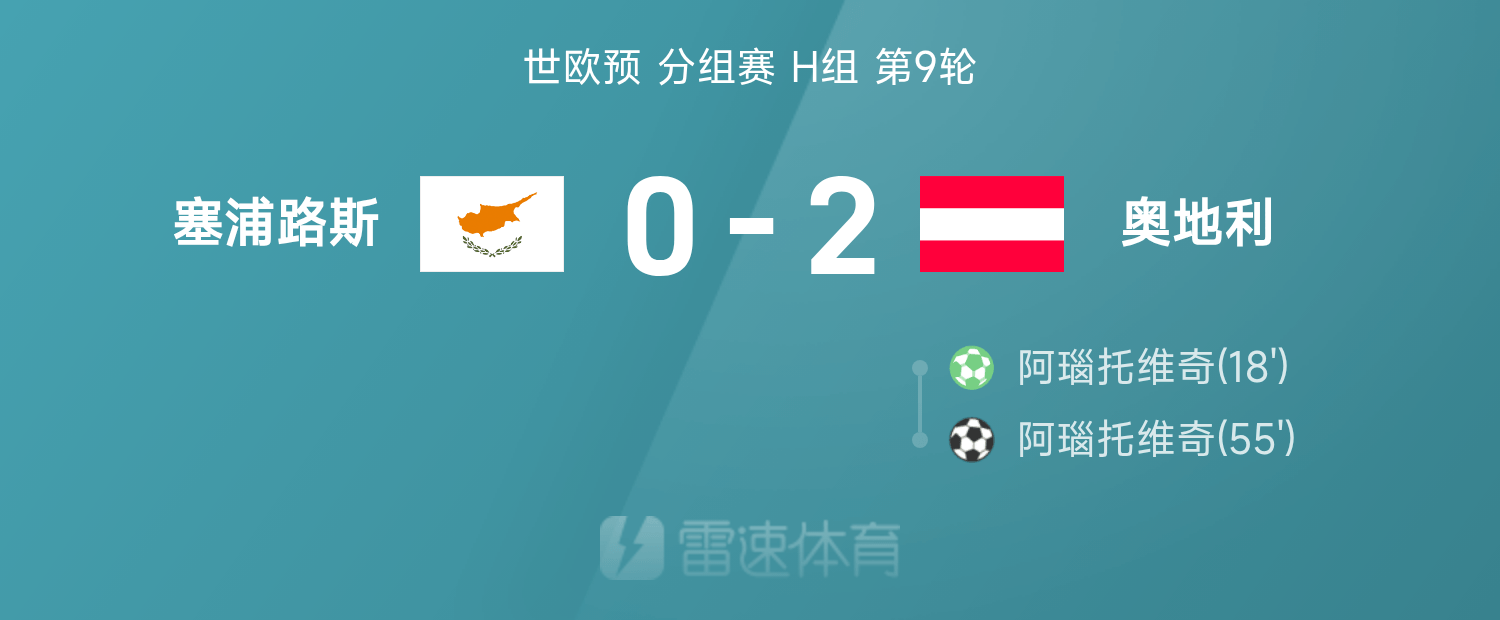55' अर्नौटोविक ने डबल-क्लिक किया, ऑस्ट्रिया ने अस्थायी रूप से साइप्रस को 2-0 से आगे कर दिया