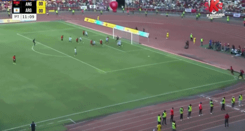 12' अंगोला ने अर्जेंटीना को दबाना जारी रखा, और तीन सेकंड के क्षेत्र के बाईं ओर रूली का शॉट बचा लिया गया