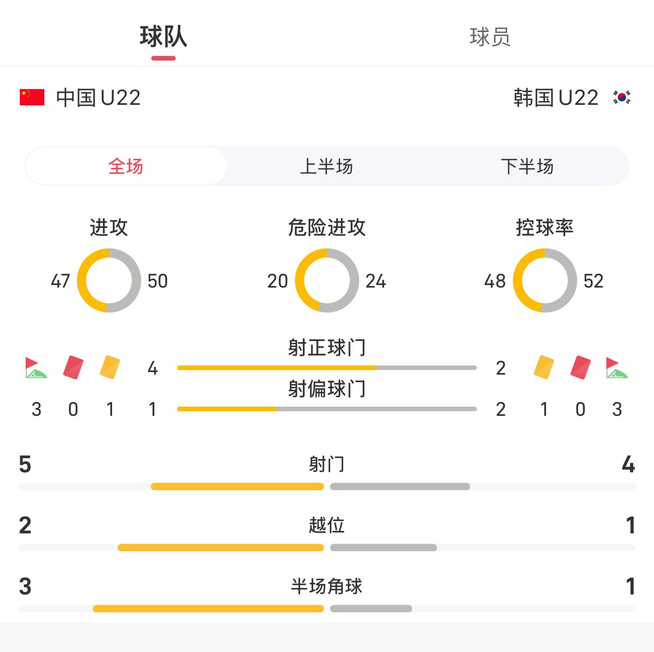U22 चीन बनाम दक्षिण कोरिया U22 पूर्ण खेल आँकड़े: