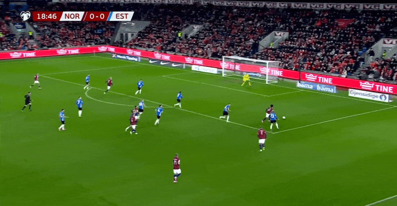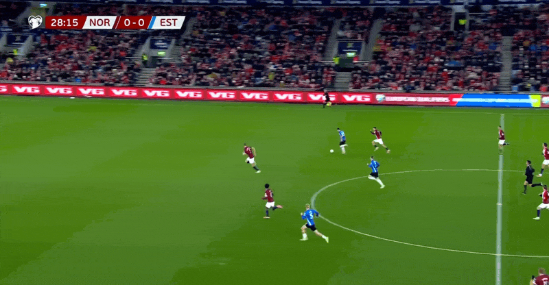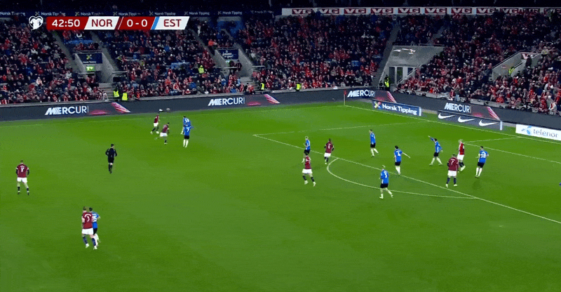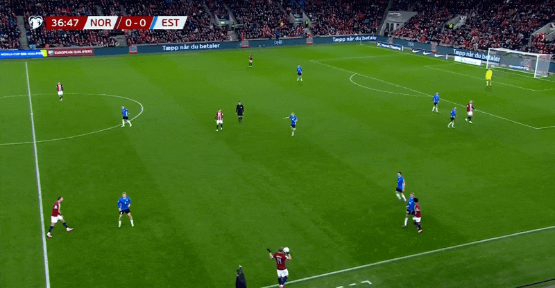 37' असहाय! नॉर्वे का आक्रामक आक्रमण लगभग आधे खेल में विफल रहा, और कप्तान हालैंड ने शिकायत करने के लिए अपने हाथ फैलाये