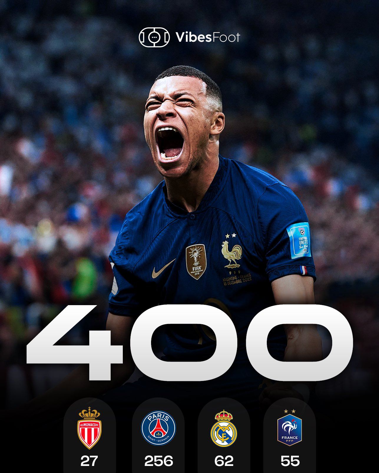 एमबापे का 400 गोल वितरण