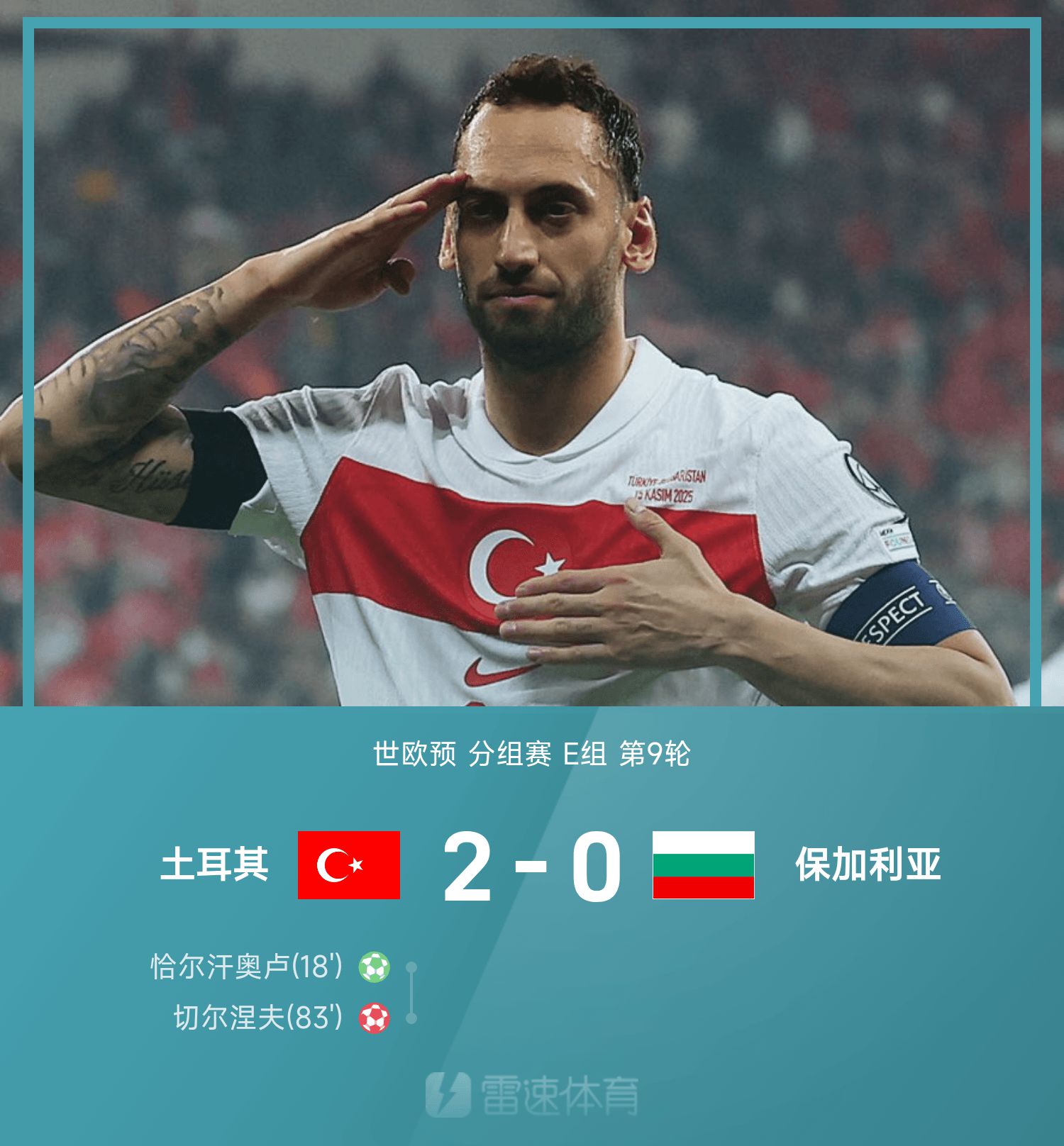 6686 स्पोर्ट्स ने 16 नवंबर को बताया कि 26वें विश्व यूरोपीय क्वालीफायर के ग्रुप ई के 9वें दौर में, तुर्की ने बुल्गारिया को 2-0 से हराया। खेल के पहले भाग में, चारहानोग्लू ने पेनल्टी शॉट लगाया, और दूसरे भाग में, चेर्नेव ने अपना गोल करके तुर्किये को अपने प्रतिद्वंद्वी को हराने में मदद की।