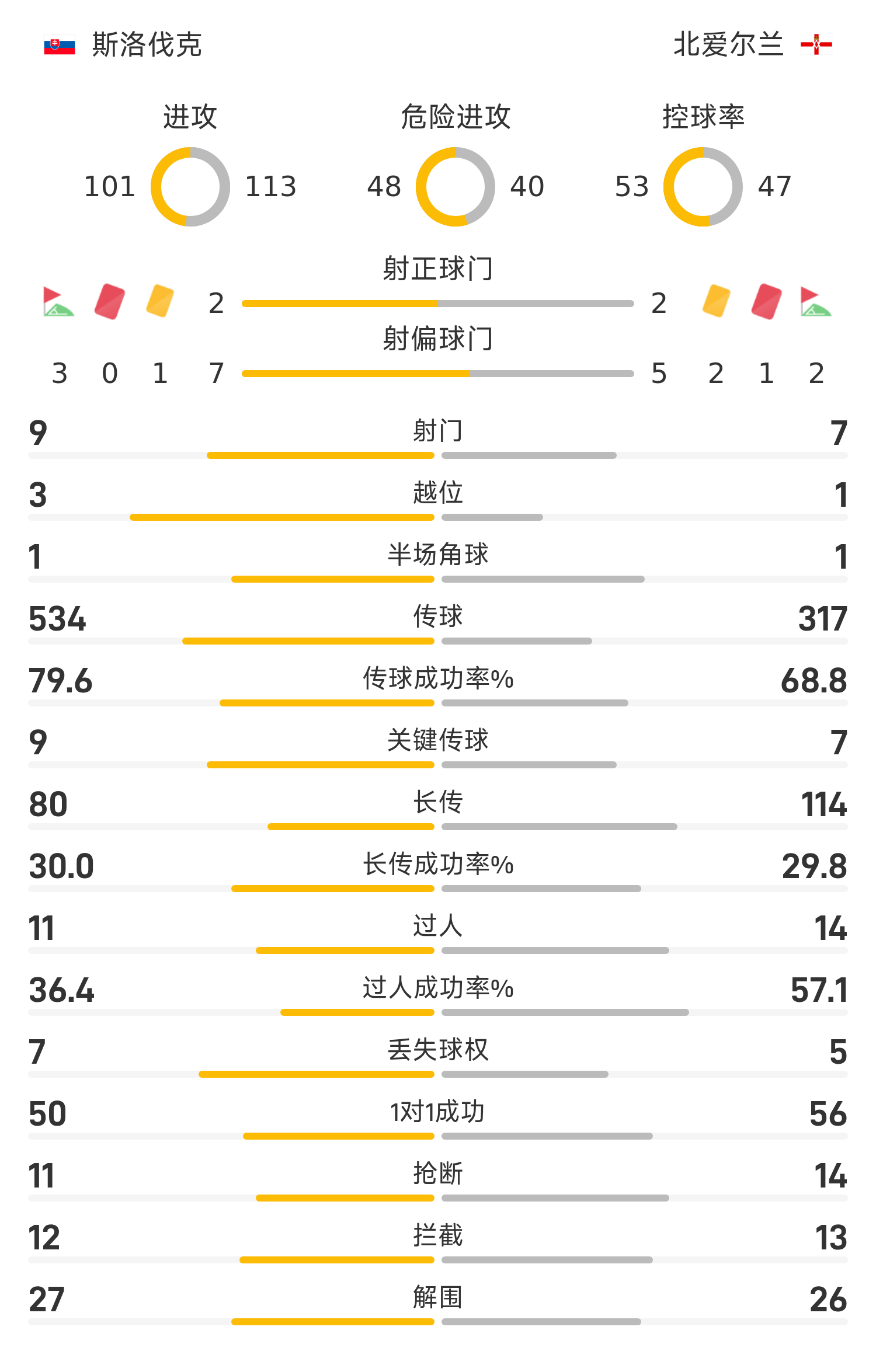स्लोवाकिया की शुरुआती लाइनअप: 1-डुब्रावका, 14-स्किनियार, 6-गोम्बेल (88'8-बोबेसेक), 4-ओबर्ट, 22-लोबोटका, 21-बेलो, 16-हेंज़को, 19-रिगो (84'10-बेनेस), 17 - हरसलिन (84'11-टुप्टा), 15-स्ट्रेक (88'9-बोजेनिक), 20-ड्यूरिस (69'7-सॉयर)