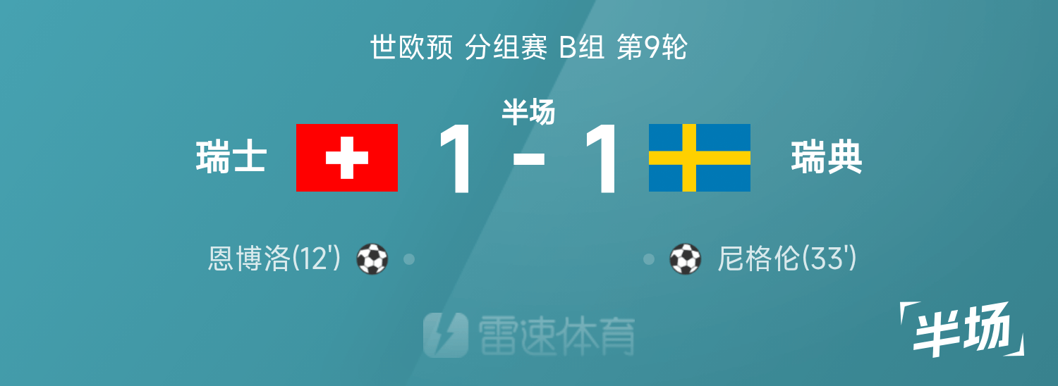 विश्व यूरोपीय प्रारंभिक हाफ़टाइम: एम्बोलो स्कोर, नायग्रेन ने बराबरी की, स्विट्ज़रलैंड अस्थायी रूप से 1-1 स्वीडन