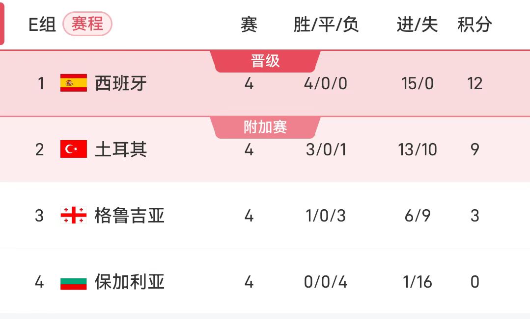 अगली ग्रुप ई प्रतियोगिता में, स्पेन का सामना जॉर्जिया से और तुर्की का सामना जॉर्जिया से होगा। स्पेन, जो वर्तमान में 3 अंकों से आगे है, अगर वह यह राउंड जीतता है और तुर्की सभी तीन अंक हासिल करने में विफल रहता है, तो वह निर्धारित समय से एक राउंड पहले संयुक्त राज्य अमेरिका, कनाडा और मैक्सिको से आगे हो जाएगा।