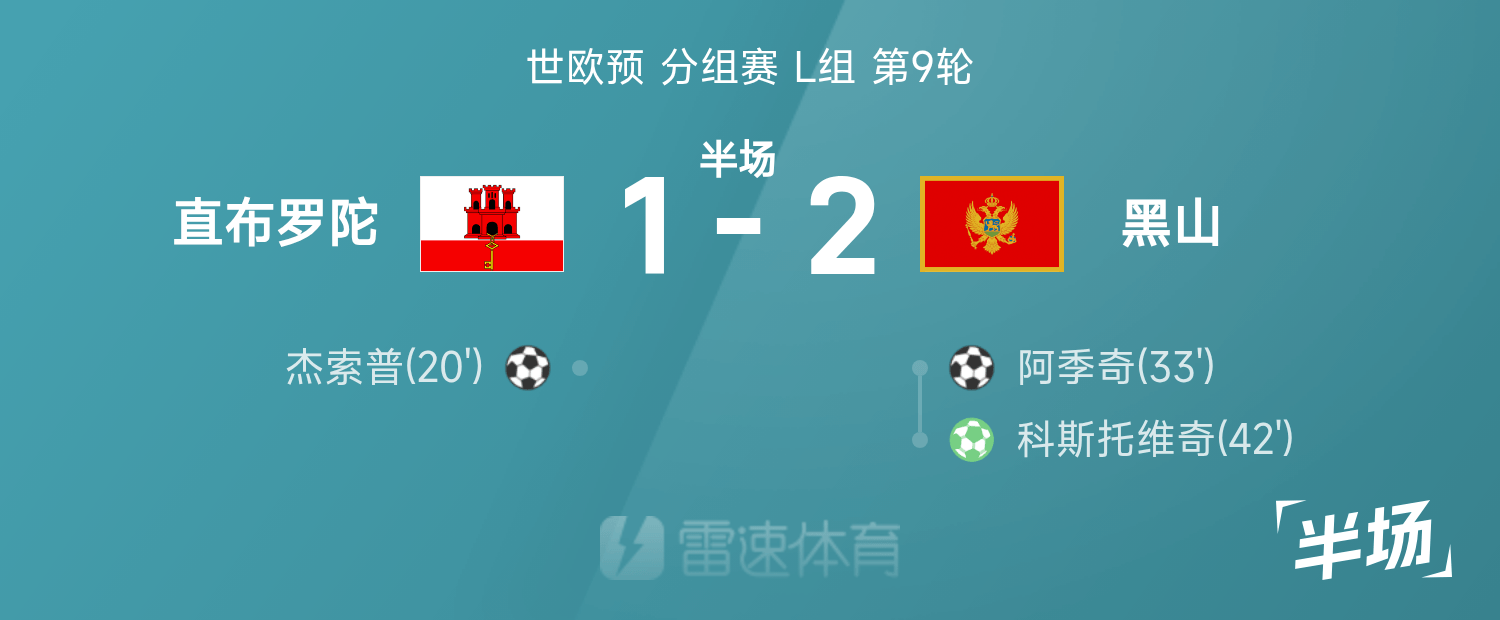 विश्व कप प्री-हाफ टाइम: जेसोप ने गोल किया, एडज़िक ने गोल किया, मोंटेनेग्रो 2-1 जिब्राल्टर