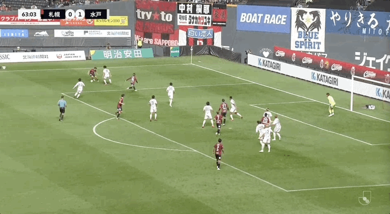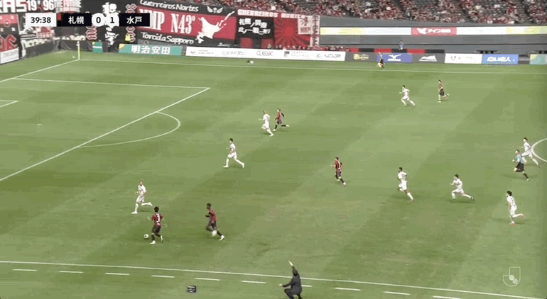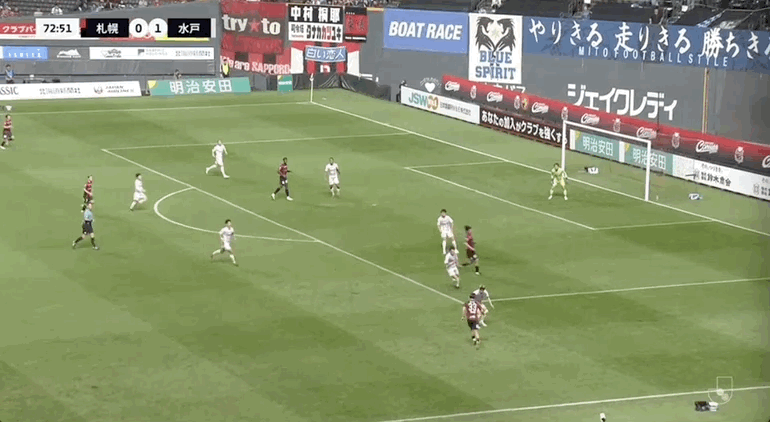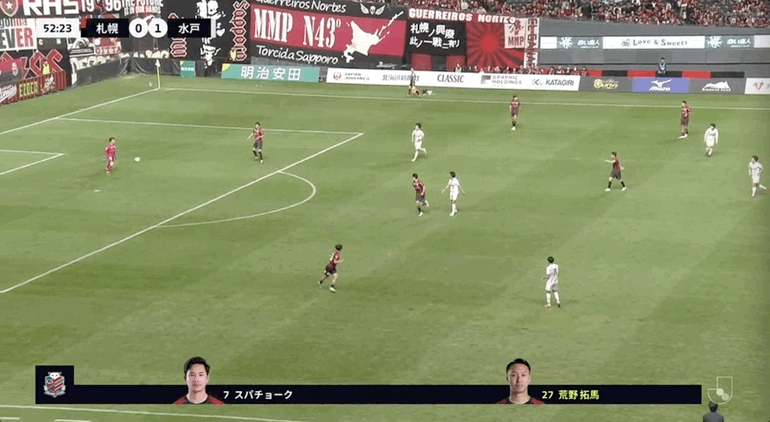 53' साप्पोरो ने एक मूव के साथ गेंद का पीछा किया, लेकिन फिर भी धैर्यपूर्वक गेंद को डाउनफील्ड से पास कर दिया