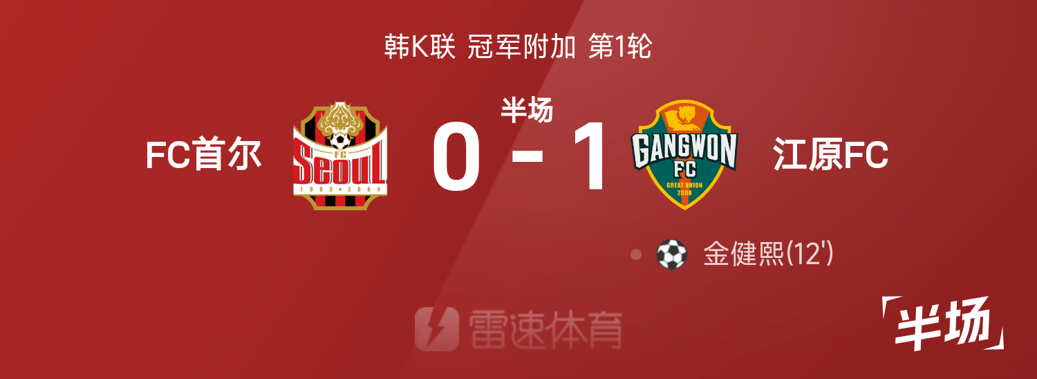 कोरियाई के-लीग हाफटाइम: किम गन-ही ने स्वीप से गोल किया, गैंगवोन अस्थायी रूप से 1-0 सियोल