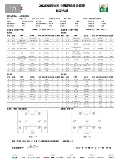 शेडोंग ताइशान की शुरुआती लाइनअप: 14-वांग डेलेई, 5-झेंग झेंग, 15-लुई लोपेज़ (एफ), 11-लियू यांग, 33-गाओ झुनयी, 35-हुआंग झेंगयु, 8-मद्रुगा (एफ), 19-ज़ेका (एफ), 38-ली ज़ियाओहेंग, 10-कज़ैशविली (एफ), 9-क्रेसन (एफ)