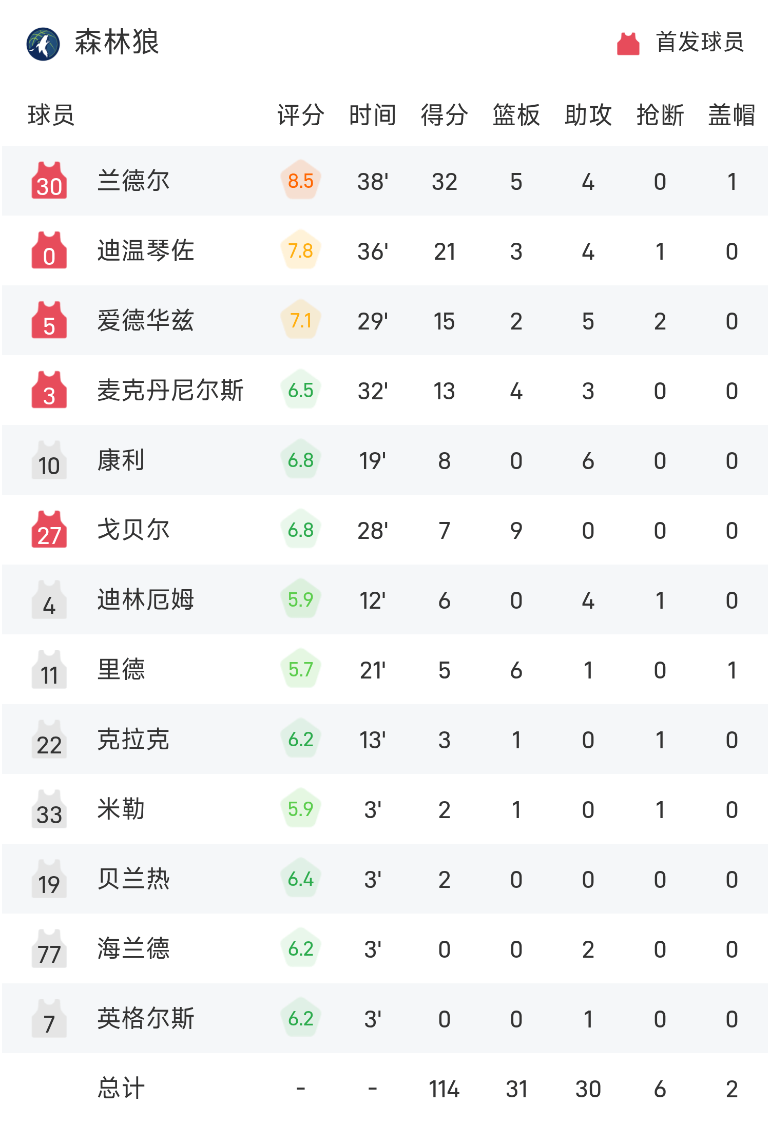 अनुनोबी ने 25 अंक और 8 रिबाउंड बनाए, टीम को 23 अंक, 7 रिबाउंड और 10 सहायता के साथ जीत दिलाई। रैंडल ने गेम में सर्वाधिक 32 अंक, 5 रिबाउंड और 4 सहायता अर्जित की।