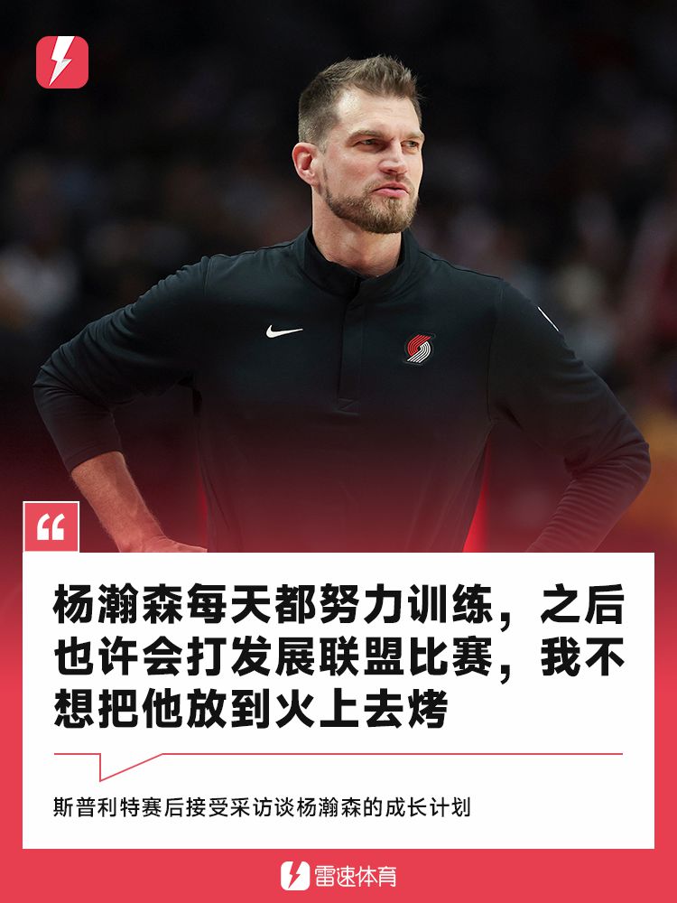 मीडियाकर्मी @yovic_ के अनुसार, खेल के बाद, ट्रेल ब्लेज़र्स के अंतरिम कोच स्प्लिट ने यांग हैनसेन के बारे में कहा: "यांग हैनसेन अपने शरीर को मजबूत कर रहा है और हर दिन अपनी गति में सुधार कर रहा है। वह खेल में खेलने के लिए डेवलपमेंट लीग में जा सकता है। मैं उसे आग में नहीं डालना चाहता।"