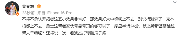 मुझे यह स्वीकार करना होगा कि ब्लेज़र्स के पांच छोटे खिलाड़ी बहुत प्रभावी हैं। यदि वे इतने प्रभावी हैं, तो वे पांचवें स्थान तक नहीं पहुंच पाएंगे। यांग हेन्सन का तो जिक्र ही नहीं, यहां तक कि क्लिंगन भी आगे नहीं बढ़ पाएगा! वॉरियर्स जैसे पुराने लोग उनका बैक टू बैक समर्थन करने के लिए पर्याप्त हैं। करी ने हाफ में 24 अंक बनाए। पोडेम्स्की और मूडी जैसे लोग क्या कर रहे हैं? मुझे इसे फिर से कहना होगा, जब मैं बोजी को खेलते हुए देखता हूं तो मेरे सिर में दर्द होता है।