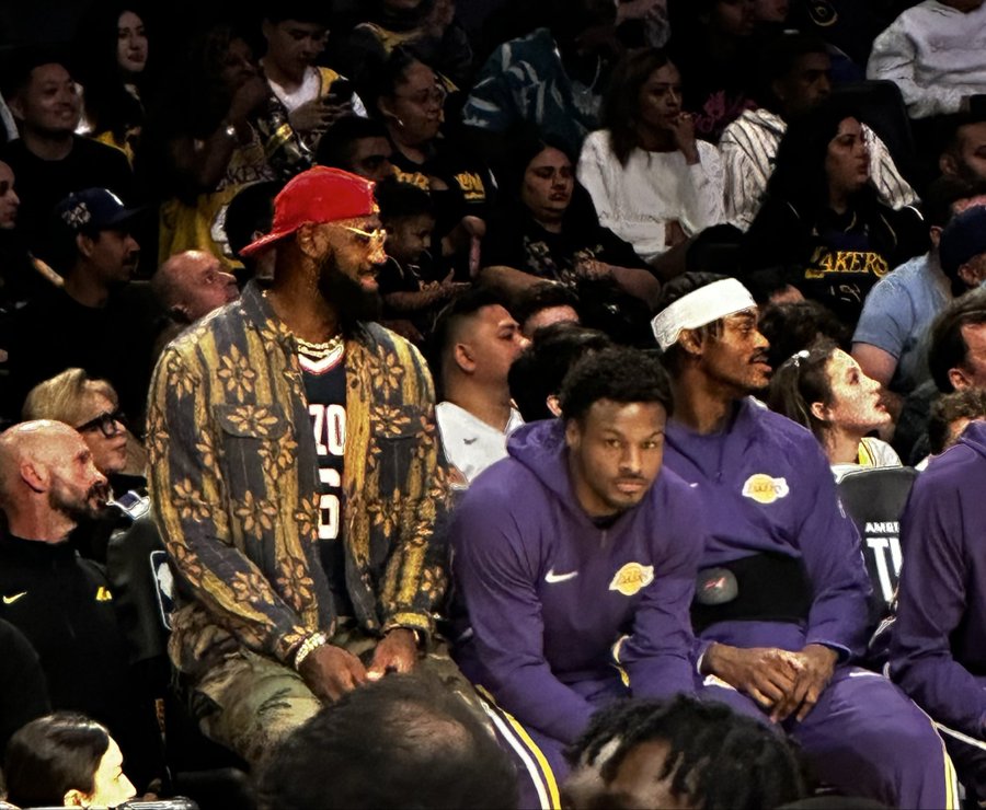 लेकर्स पत्रकारों ने घटनास्थल की तस्वीरें साझा कीं. लेब्रोन खेल देखने के लिए अपने सबसे छोटे बेटे ब्राइस की एरिज़ोना स्टेट यूनिवर्सिटी की वर्दी पहने हुए दिखाई दिए, जबकि उनका सबसे बड़ा बेटा ब्रॉनी उनके बगल में बैठा था।