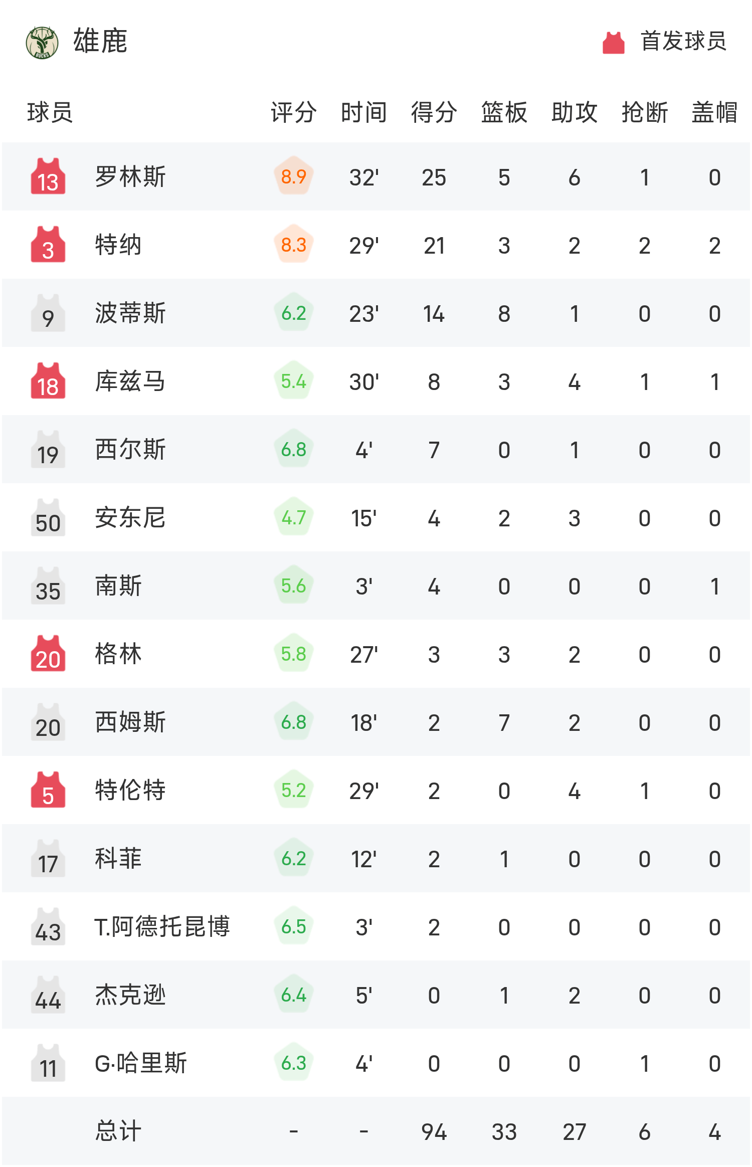 ब्रिजेस ने 20 अंक, 6 रिबाउंड और 6 सहायता करके टीम को जीत दिलाई। रॉलिन्स ने गेम में सर्वाधिक 25 अंक, 5 रिबाउंड और 6 सहायता अर्जित की।