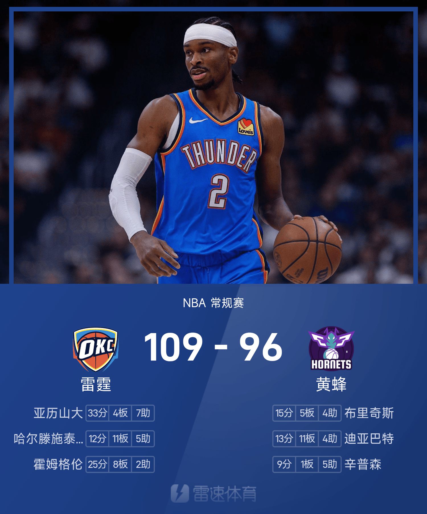 थंडर 109-96 हॉर्नेट्स