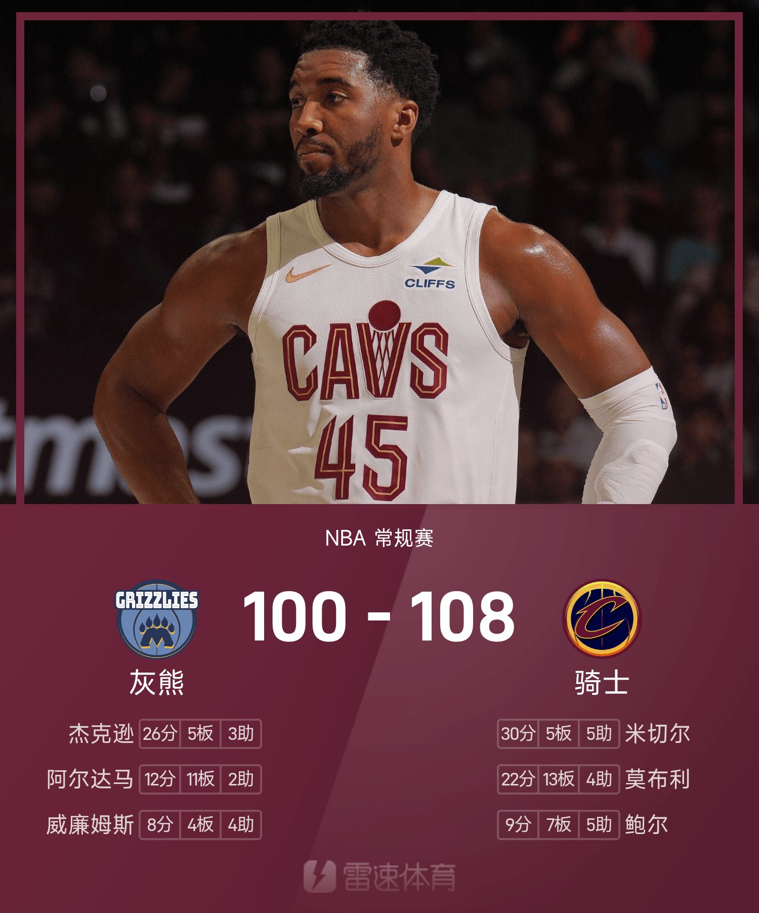 एनबीए युद्ध रिपोर्ट: मिशेल 30+5+5, कैवलियर्स ने ग्रिज़लीज़ को 108-100 से उलट दिया
